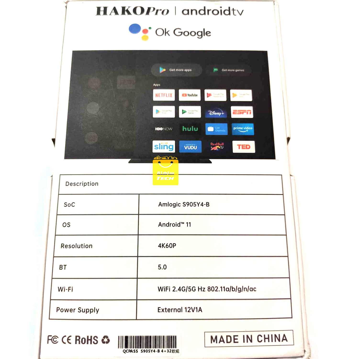 HAKO-Pro Smart TV Box, Android 11, Certification Google, Amlogic S905Y4, Touriste, Wifi, BT5, 4K TV Box.